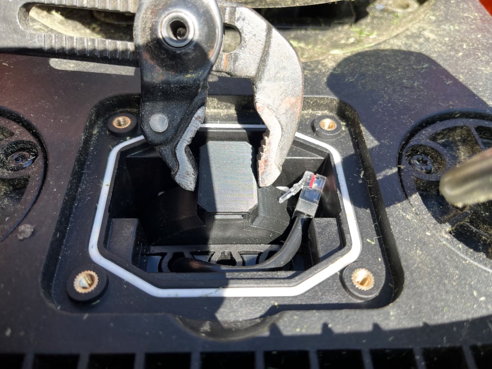 - Remove the screws and open the compartment on the bottom of your i-series mower